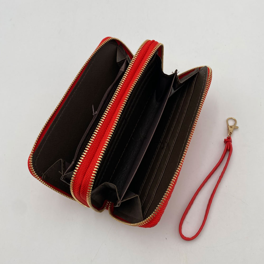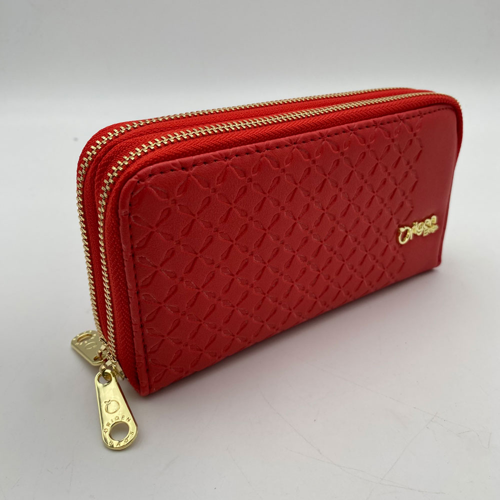 Billetera dama sintética mediana, alta calidad importada, mondero interno, múltiples tarjeteros disponibles. 5 colores disponibles: rojo, miel, oro rosa, crema y negro. Medidas: 10cm alto x 16cm ancho.