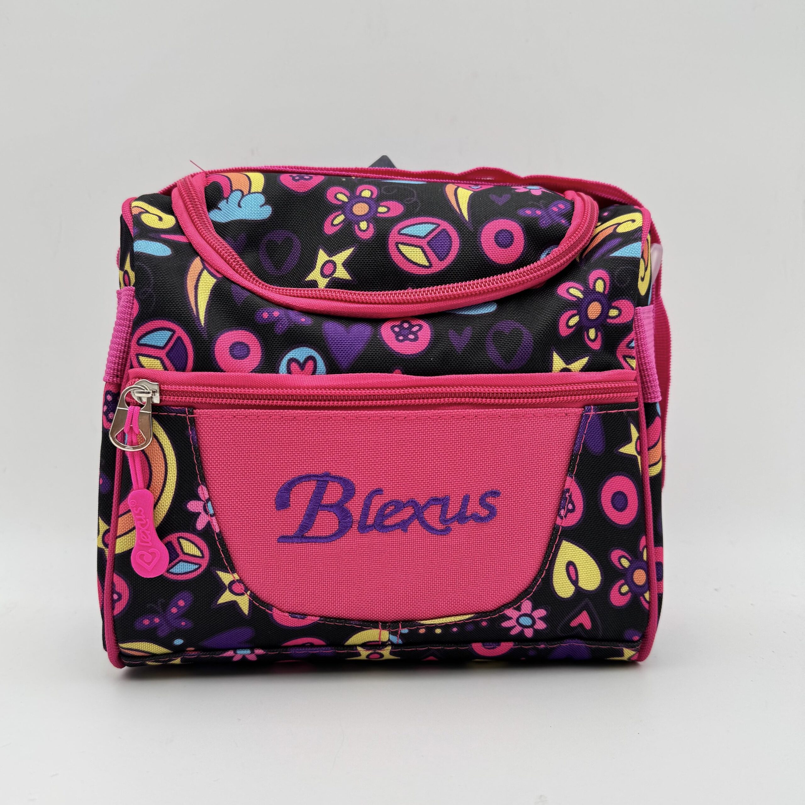 Lonchera blexus, calidad nacional 100%. Material térmico en el interior. Medidas: 23cm de ancho x 24cm de alto x 18cm de fuelle. 4 diseños disponibles